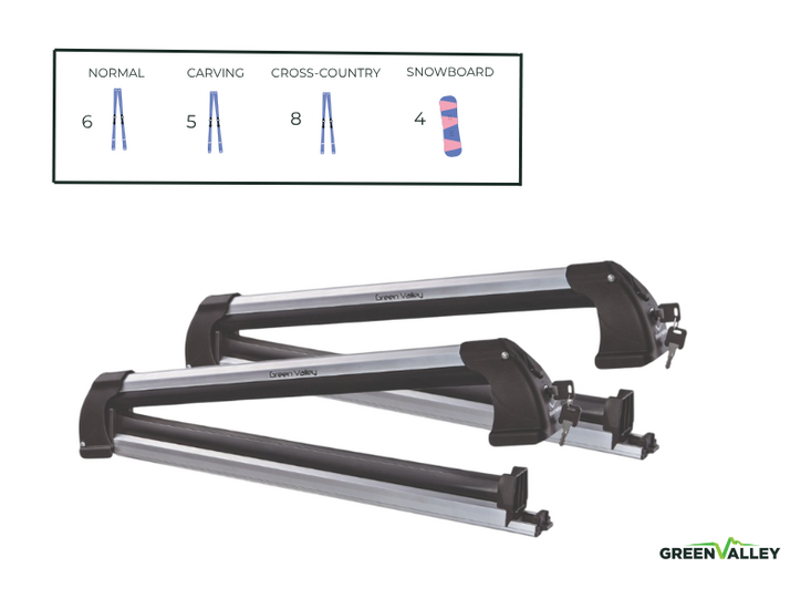 • Capaciteit voor 6 paar ski’s of 4 snowboards (610 mm laadlengte)