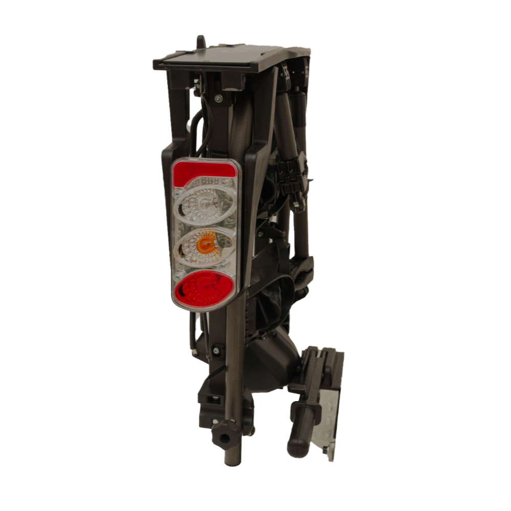 Na gebruik kan de fietsendrager ingeklapt worden tot een compact formaat, zodat hij weinig ruimte inneemt in de garage of kofferbak. In opgeklapte stand blijft de drager stevig staan en steekt uw auto slechts 21 cm verder uit.