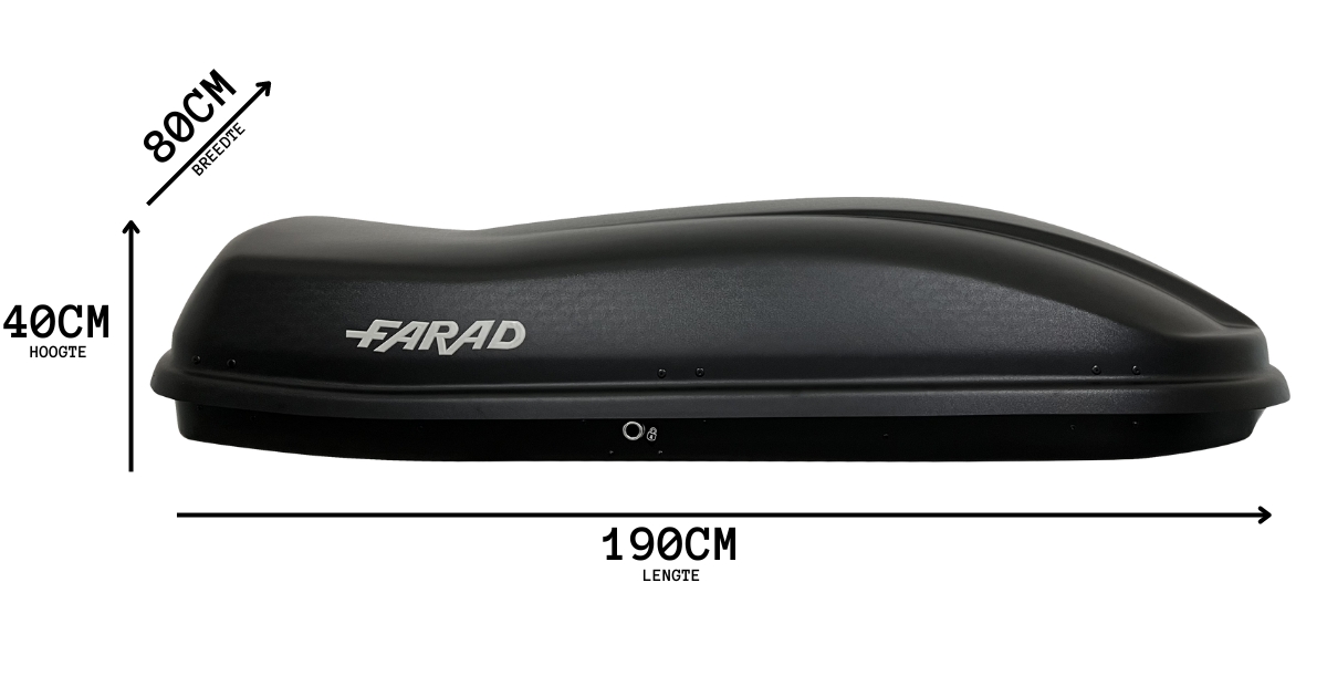 De Farad N6 Marlin is een ruime dakkoffer van 480 liter! Ideaal voor vakanties met veel bagage, veilig en eenvoudig te monteren.