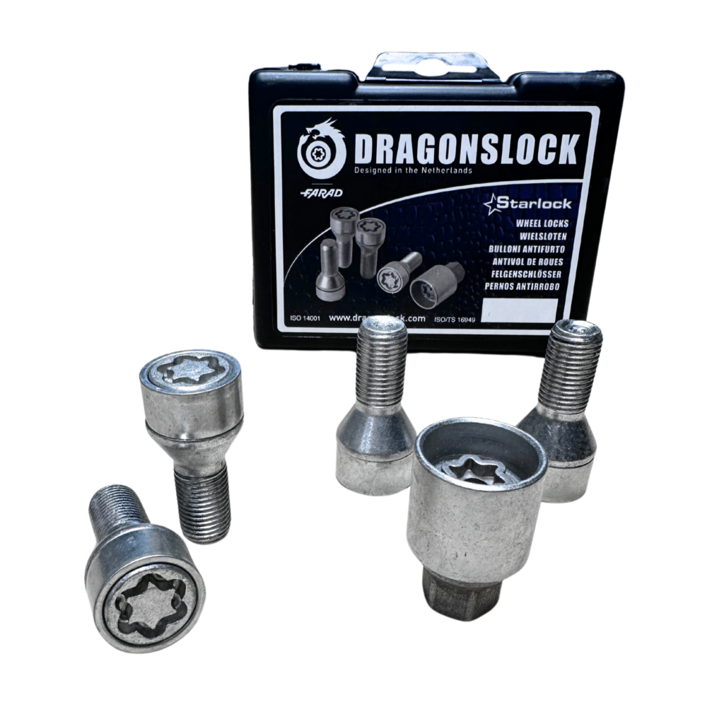 Dragonslock wielsloten, het betrouwbaarste merk met het meest veilige slot. Zo ontworpen dat deze een mooi geheel vormen en opgaan in het design van de velg zoals de ontwerper het bedoeld heeft.